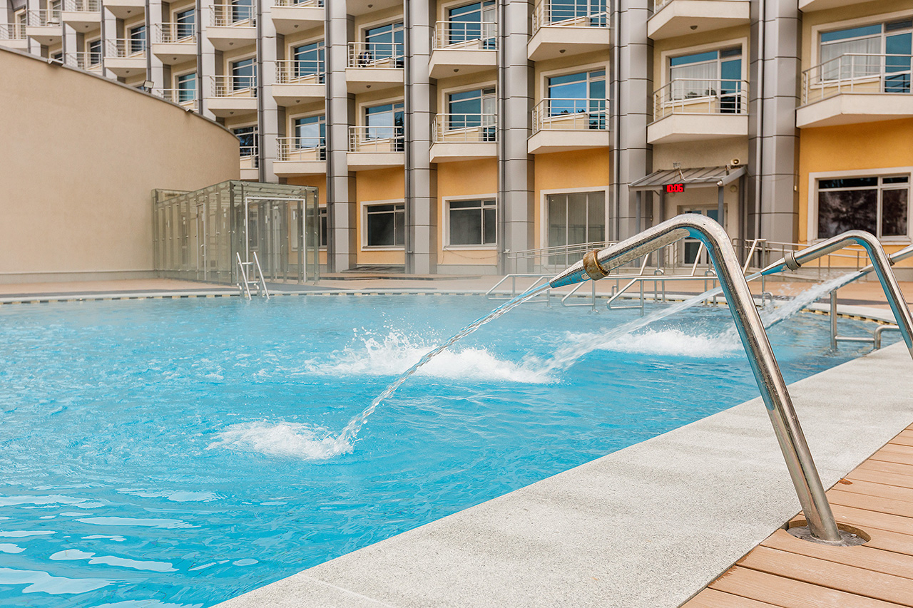 Главная / О санатории / Фотогалерея / Термальный открытый бассейн