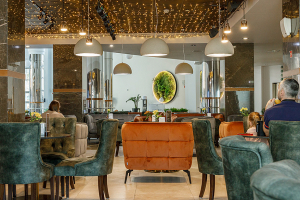В лобби-баре, расположенном в фойе 1-го корпуса, гостей ждут изысканные десерты от собственной кондитерской «Pleasure», ароматный свежесваренный кофе и авторские коктейли, приготовленные с особым вниманием к деталям.
